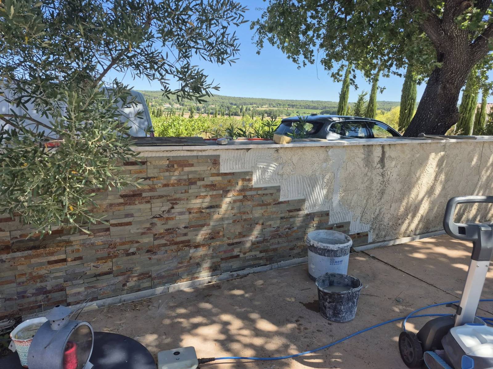 La pose de pierres de parement permet de garder la structure existante et offre une grande variété de coloris, de tailles et de motifs.