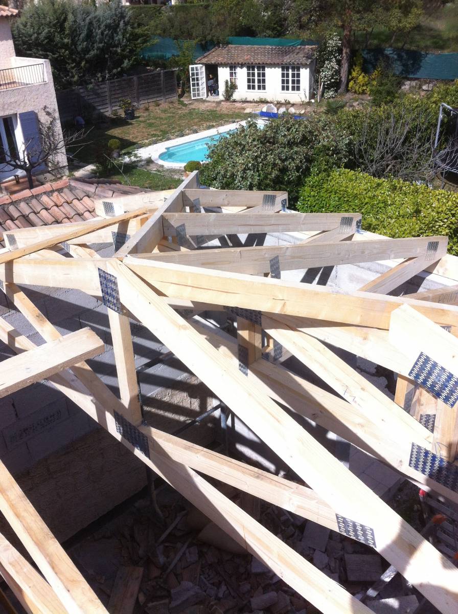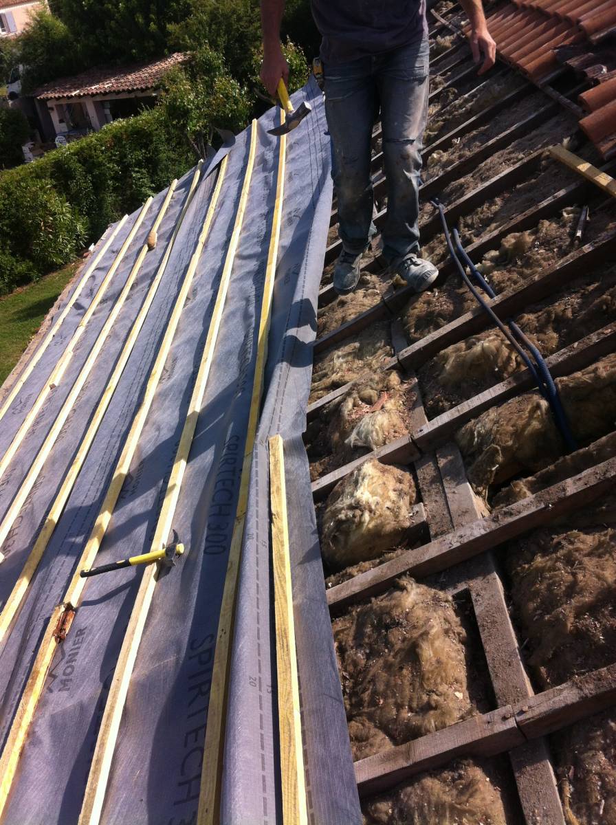 Nous intervenons sur les toitures très anciennes avec des poutres massives et des tuiles romanes ou sur les toitures récentes en fermettes avec des tuiles mécaniques. Notre expérience dans ce domaine nous permet de travailler avec des plaques-sous-tuiles (PST), des panneaux isolants pour plafonds rampants, des plafonds en plaques-de plâtre et de la laine de verre soufflée pour l'isolation.